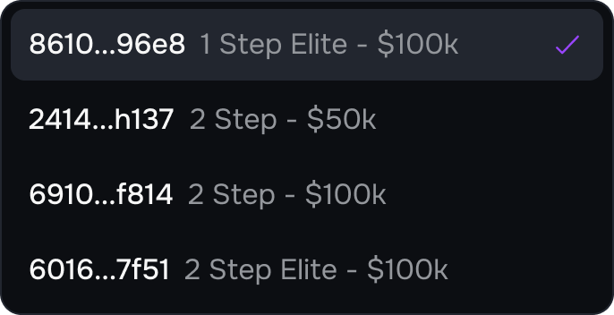 Getting funded is simple. You start by selecting a 1-Step or 2-Step evaluation and hitting the required profit target while respecting the daily and overall drawdown limits.